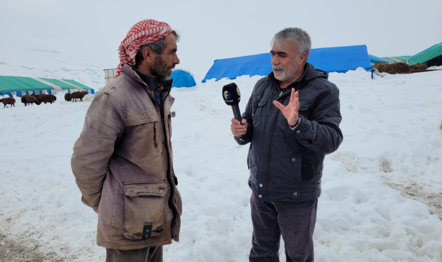 Elazığ'ın merkeze bağlı Kovancılar ilçesinin kırsal bölgelerinde kurdukları çadırlarda yaşam mücadelelerini sürdüren Beritan Aşireti üyeleri, kış ayları boyunca hem kendi yaşamlarını hem de hayvanlarının bakımını karlı dağlarda ve soğuk havada devam ettiriyor.
