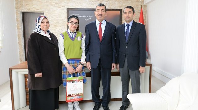 Türkiye Değer Ödülleri Yarışmasında Eser Ödülü/Hikaye Dalında Yardımseverlik teması ile yazdığı “Amin Alayı” başlıklı yazı ile Türkiye 1. Olan Dilara Alan il milli eğitim müdürünü ziyaret etti.