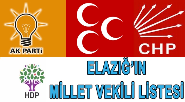 7 Haziran 2015 tarihinde yapılacak olan genel seçimlerde adat listeleri netleşti. Siyasi partiler Yüksek seçim kuruluna verdikleri liste ile seçime girecekler. Elazığ 7 Haziran’da yapılacak olan genel seçimlerde AK PARTİ, MHP, CHP ve HDP’nin milletvekili listesi şöyle oluştu.