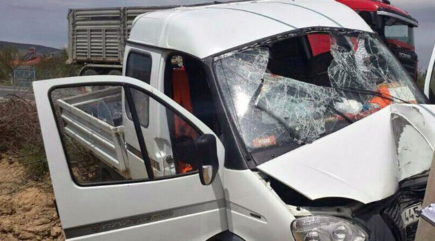 Elazığ Keban Karayolu 20. Km de meydana gelen trafik kazasında işçilerin bulunduğu kamyonet direğe çarptı.2 si ağır, 7 işçi yaralandı